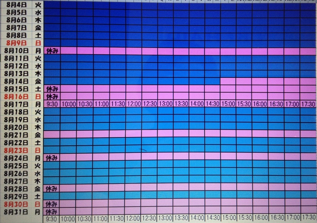 ぁ予約をする際にこの時間を参考にしてフォームよりご予約ください。