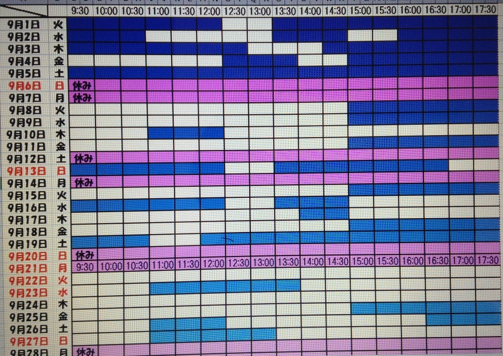 2015年8月,9月の空き状況を更新します。