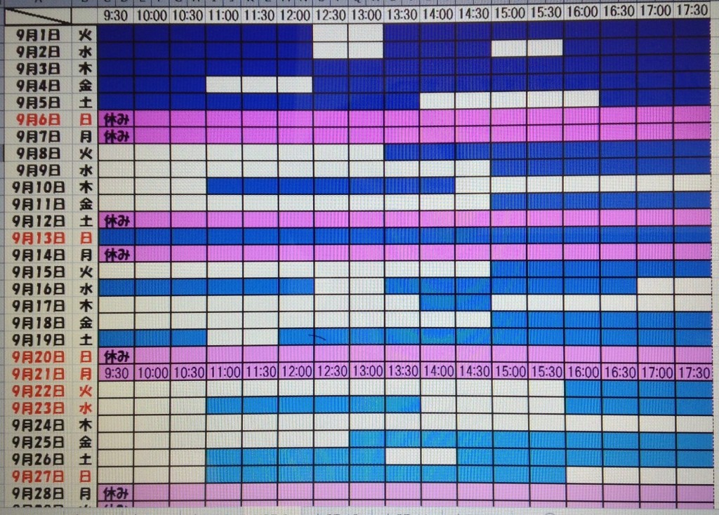 2015年8月,9月の空き状況を更新します。