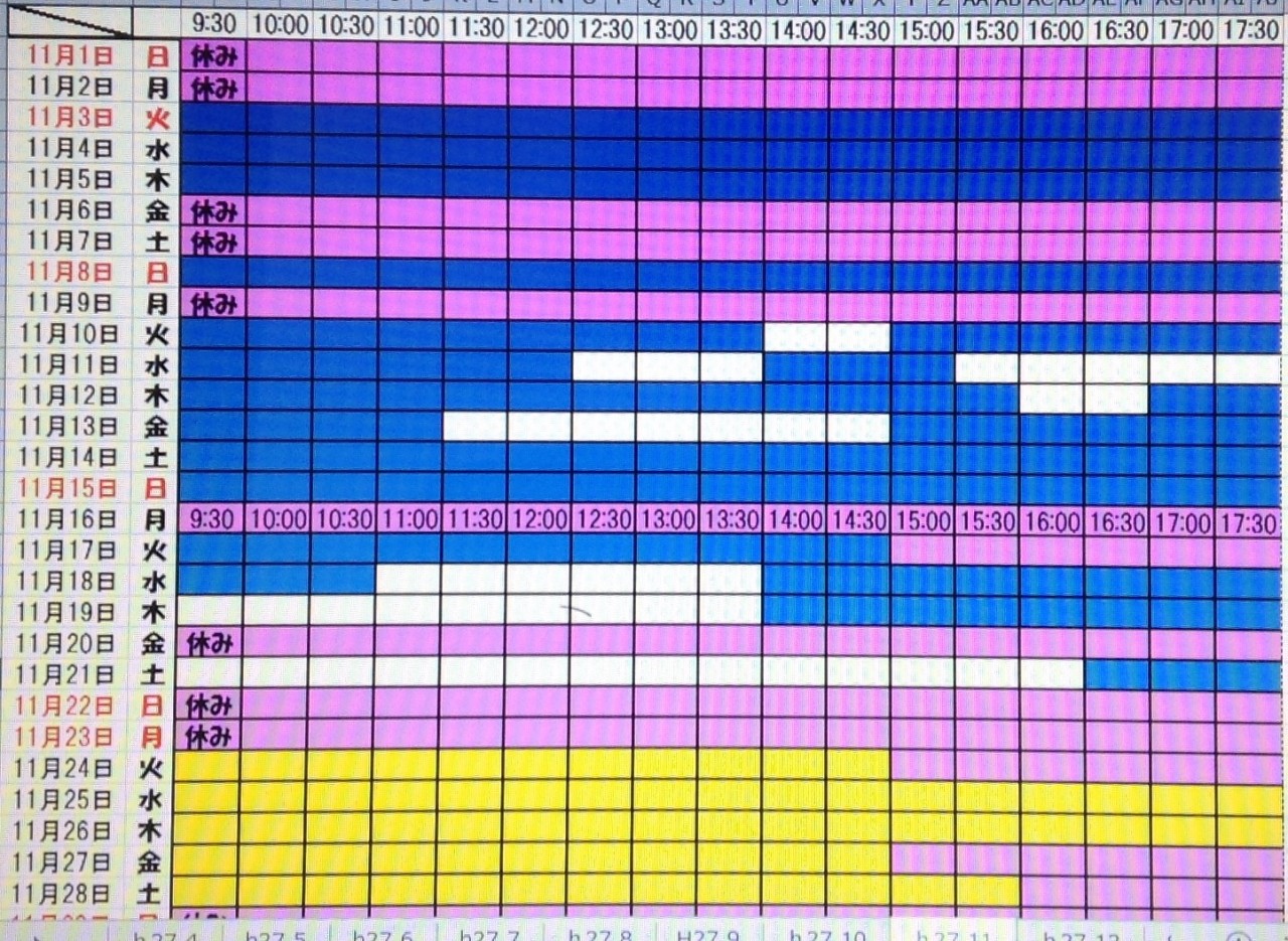 2015年10月11月の予約状況です