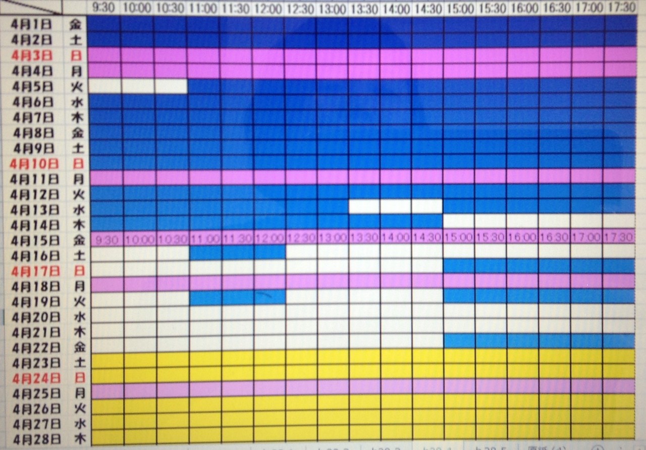 2016.3月,4月予約状況 2016.3.17更新