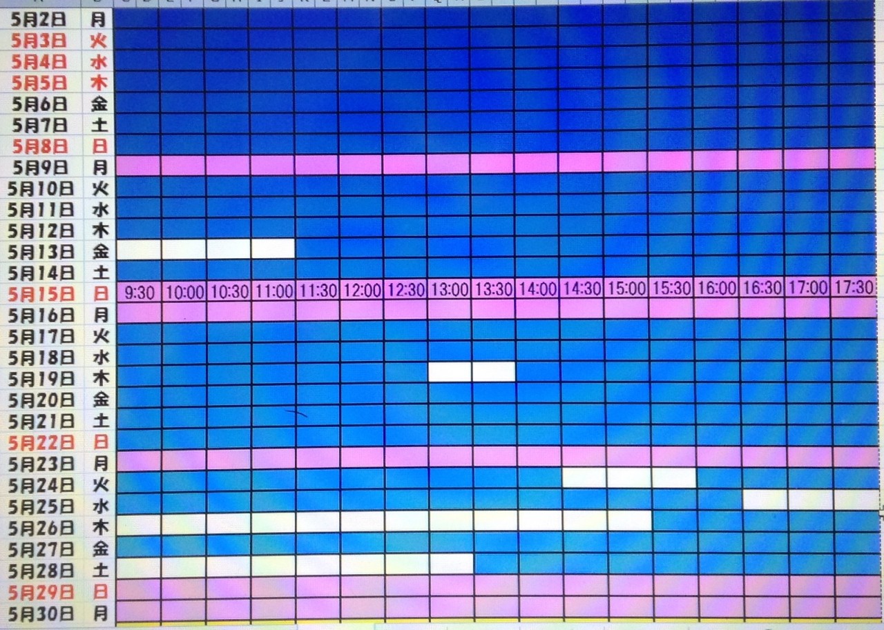 2016.4月.5月予約状況 4.27最新