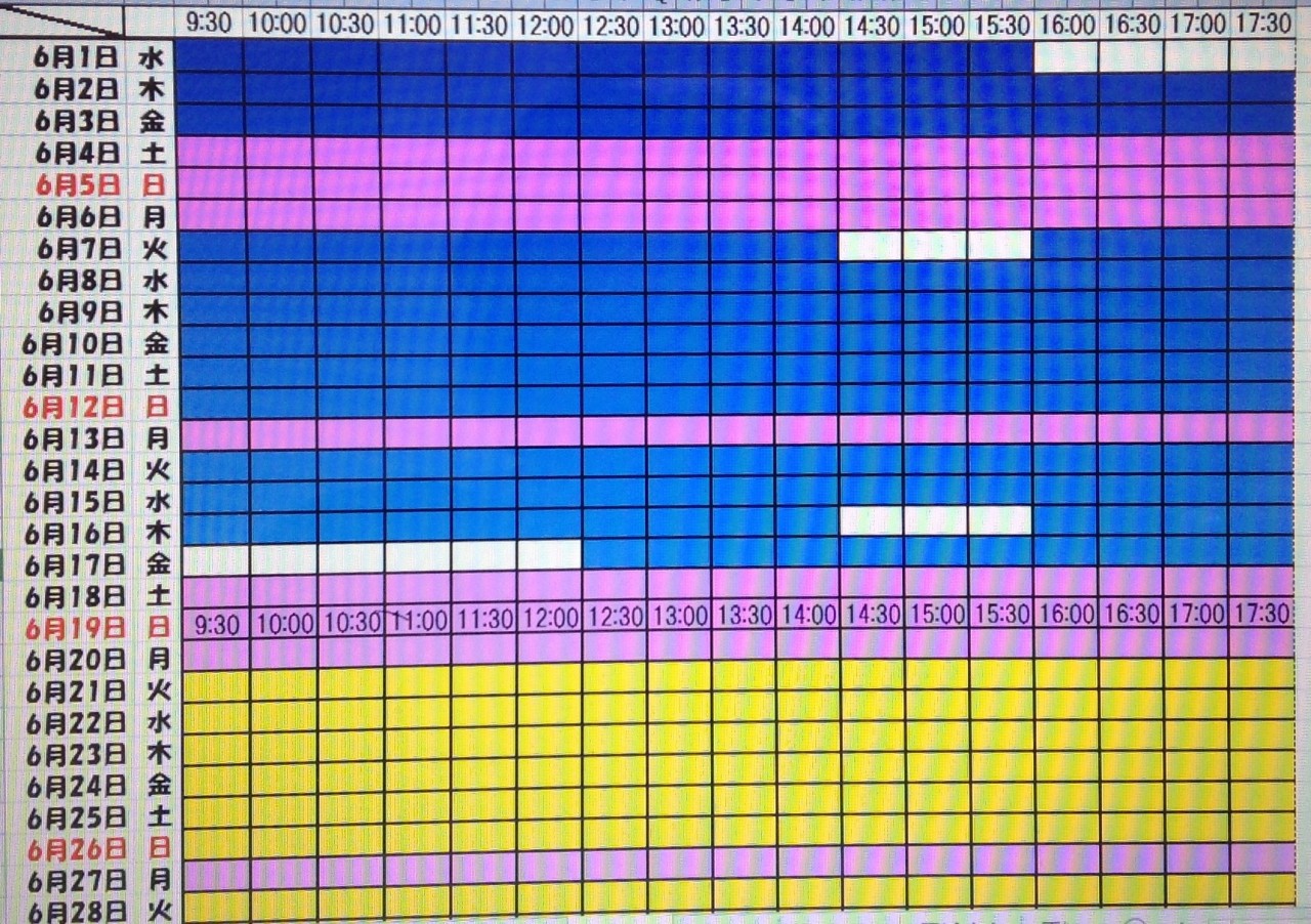 黄色・・・・・・本日予約受付不可