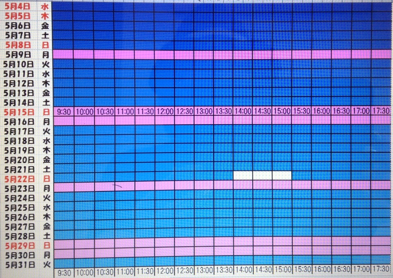 黄色・・・・・・本日予約受付不可