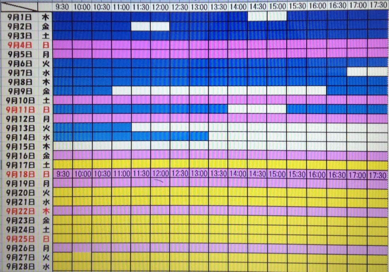 黄色・・・・・・本日予約受付不可