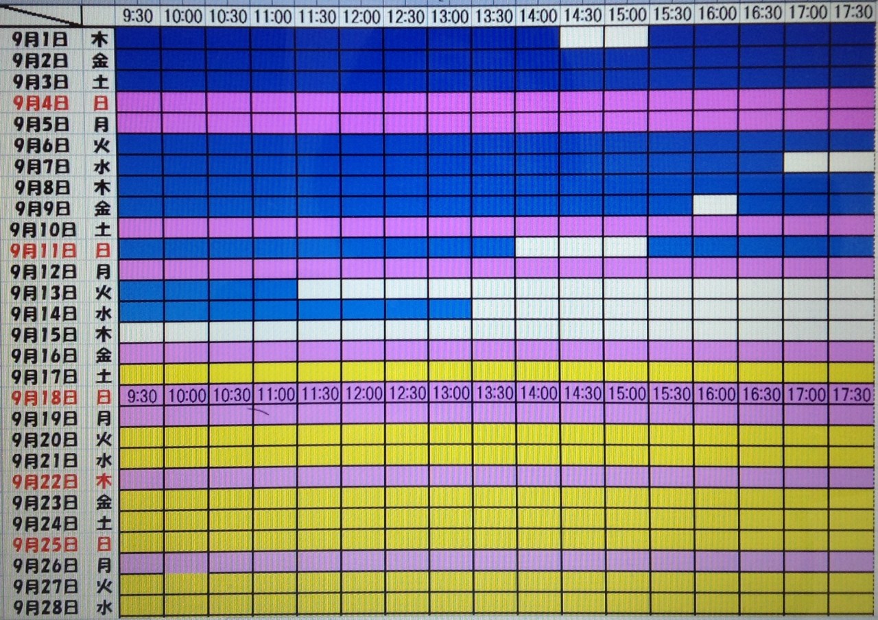 黄色・・・・・・本日予約受付不可