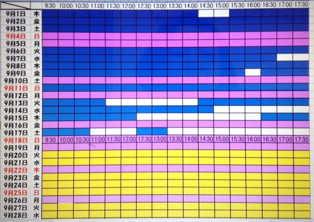 黄色・・・・・・本日予約受付不可
