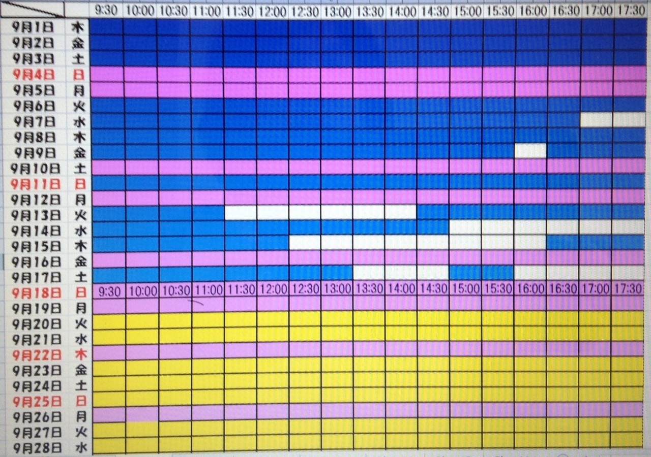 黄色・・・・・・本日予約受付不可