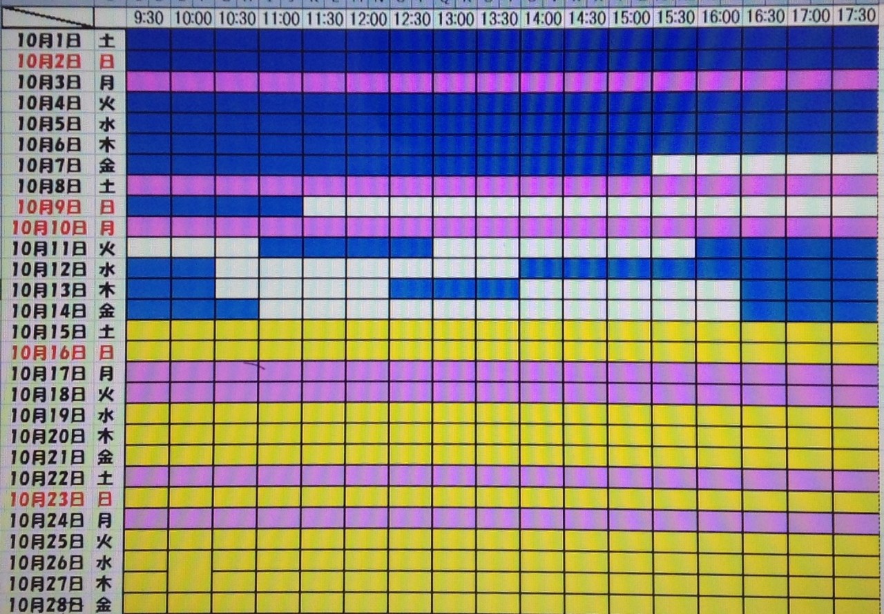 黄色・・・・・・本日予約受付不可