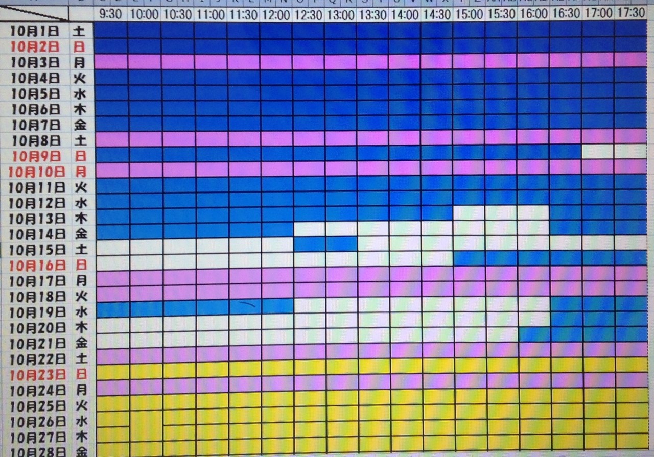 黄色・・・・・・本日予約受付不可