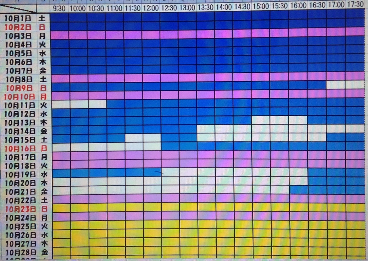 黄色・・・・・・本日予約受付不可
