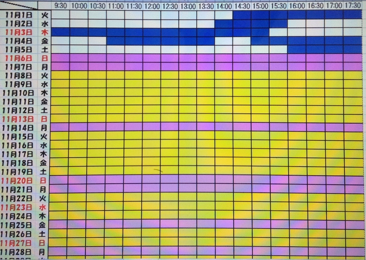 黄色・・・・・・本日予約受付不可
