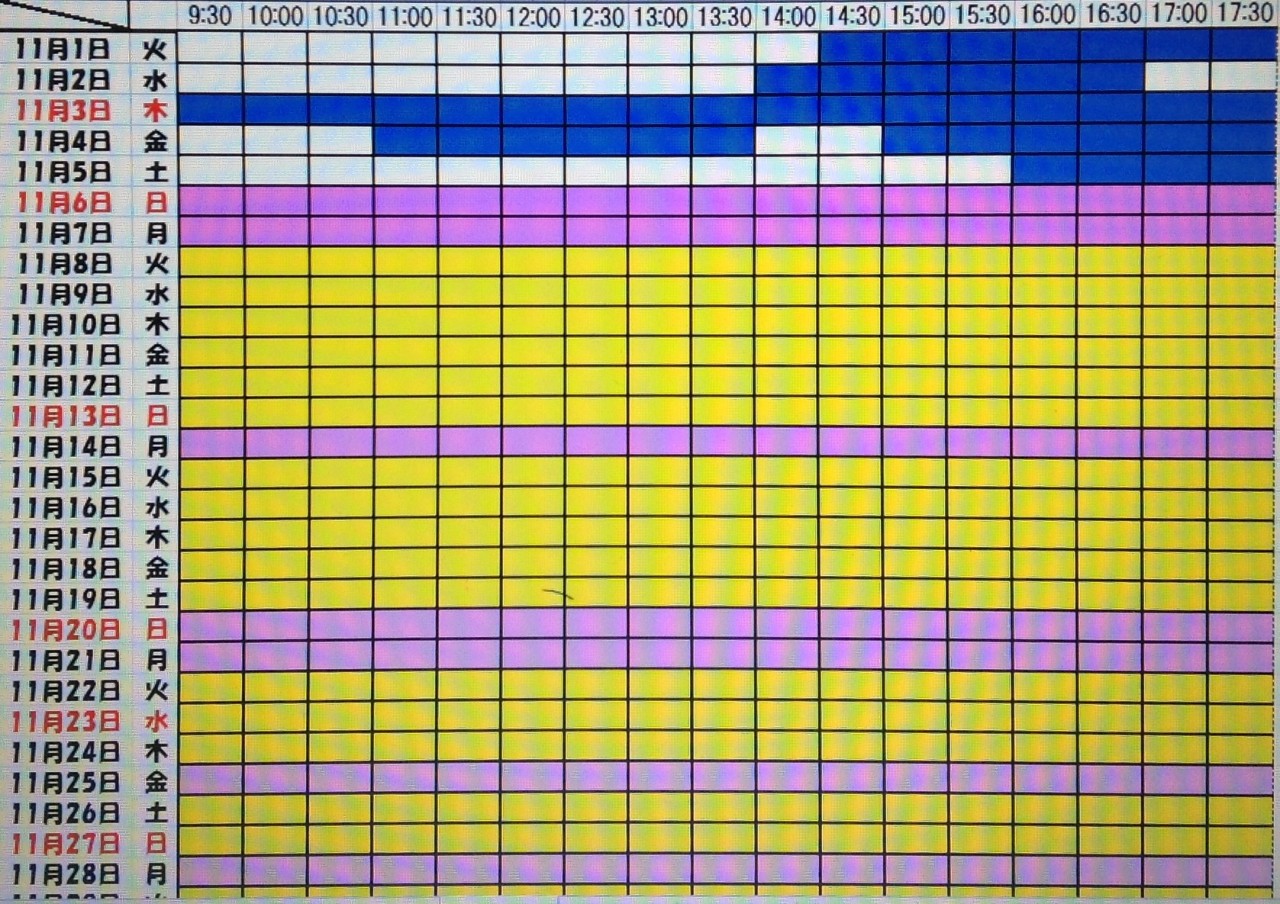 黄色・・・・・・本日予約受付不可